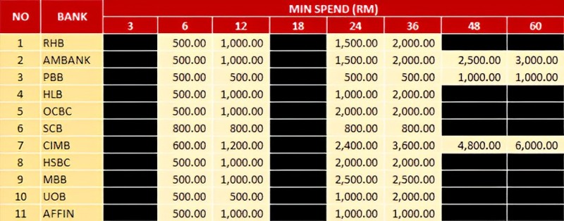 What is the minimum spend for Installment?